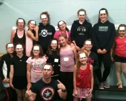 We started the seminar off ice with a few backspin jumps and some mime/performance exercises (Thanks Tom Johnson!) I jokingly said all the name tags should be put on their foreheads, and sure enough they all did it! Uh oh...they are starting young with eyebrow waxing!