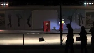It seems like only a few weeks ago that we had skated our last show of 2010. We now have two shows under our belt with the guest skaters of Mirai Nagasu, Nathan Chen, and Alissa Czisny. This year is the 75th anniversary where they are having us skaters do our older, popular routines. They invested in a big screen at the front of the "curtain" that projects some cool stuff, most of which we don't see since we are busy skating! (the picture was taken during a rehearsal which is why nothing is projected. The screen is behind my "prop" box.)
