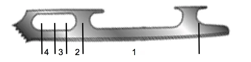 Your blade has a big radius in the middle, and gets smaller as you go towards the toe-pick. Glide on the back of your blade for a big circle, and the very front for a small circle. Consider the the diagram below from sections 1 – 4 going from a big radius to a small radius (or big circle to a smaller circle).