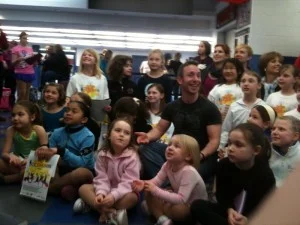 Believe it or not this gig is going to be a tough one! Opening and closing is choreographed by Denis Petukhov and Melissa Gregory who are really good. Today we started out with a few pictures with the kids. As you can see with the group shot all the kids dug me because I was totally eye level to them all! Then during this picture Rachael Flatt showed up with Alexe Giles. Yep, the kids FREAKED out and got very antsy for the picture to be over. Once the group shot was done, the kids grabbed their markers and t-shirts and accosted them for their autograph. Rockne and Keanu were signing away along with Dorothy Hamil. After a good dinner, Denis and Melissa ran the off ice rehearsal to teach us opening and closing. We only have two hours tomorrow on the ice. Uhm...yeah, well...like I said in the video title...this white boy can skate and jump, but dance? yeah, not so much....who the heck knows what's going to happen tomorrow!